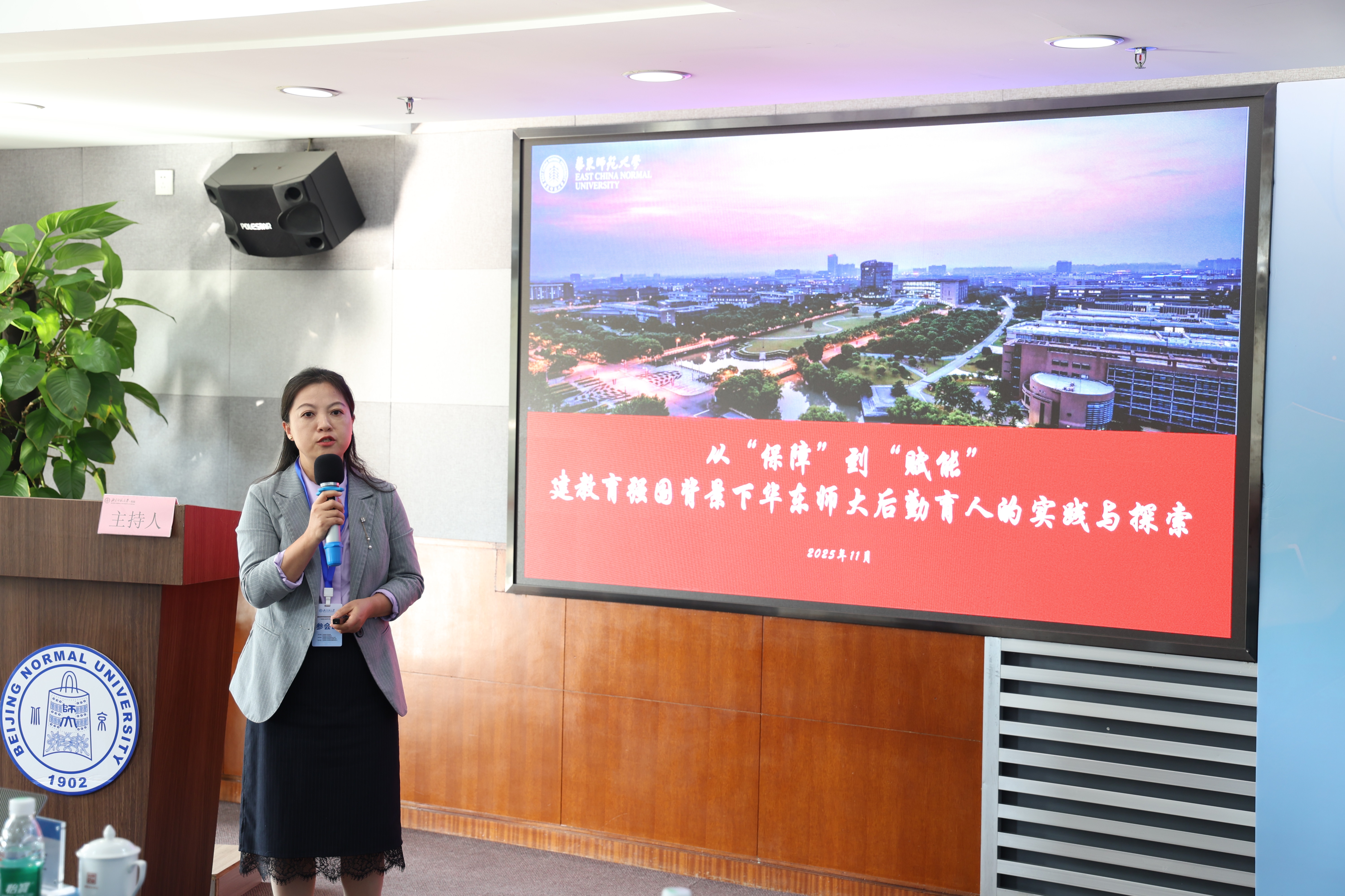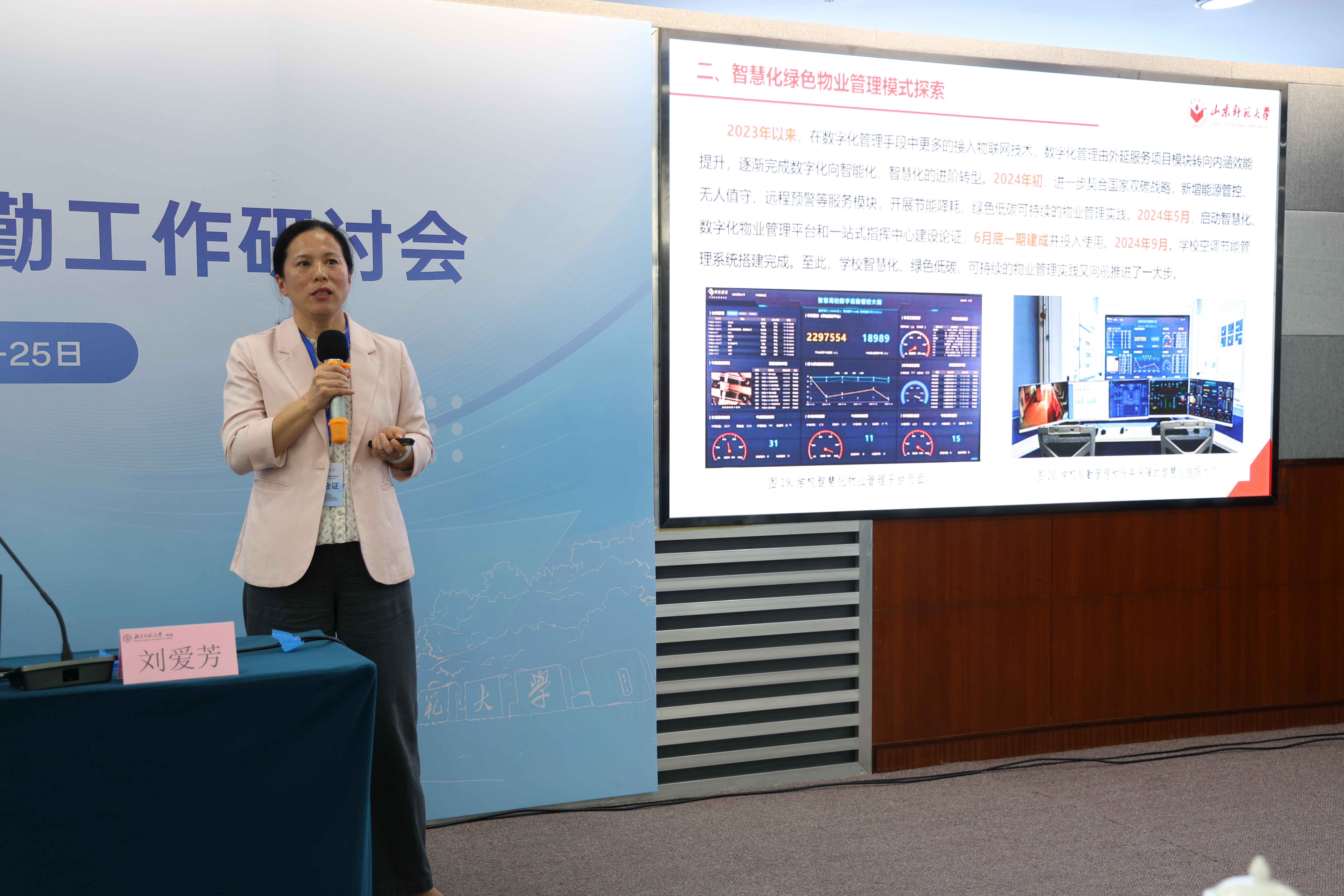 在院校分享环节,五所师范高校的代表结合各自学校特色,集中展示了后勤服务创新实践成果。北京师范大学副总务长赵强介绍了“学校自营+合作经营+劳务派遣+品牌引进”的餐饮多模式运营机制,通过制度化管理与透明化监督,实现公益属性与市场活力的有机平衡。华东师范大学后勤保障部部长刘萍以丽娃河治理、毕业季花海建设等特色工作为例,阐述了后勤服务深度融入“三全育人”的实践路径。华中师范大学后勤保障部部长袁本芳分享了“管理机关+服务实体”的扁平化治理模式,通过PDCA循环管理,实现了学生公寓管理的标准化、智能化、精准化与育人化。陕西师范大学后勤管理与保障处杨悝展示了学校数智赋能能源管理的探索成果,其智慧供能平台实现了水电暖全流程可视化管控,有效达成了节能减排目标。山东师范大学后勤管理处处长刘爱芳介绍了智慧化绿色物业管理模式,通过“学苑管家”小程序、一站式指挥中心等数字化手段,构建起闭环管理与育人功能相融合的服务体系。