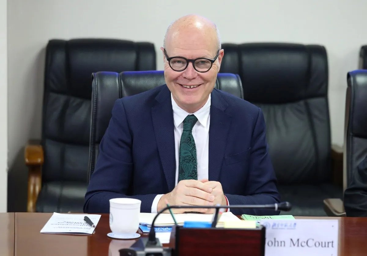 5月13日上午,意大利马切拉塔大学(University of Macerata)校长约翰·麦克库尔特(John McCourt)一行5人访问北京师范大学。校长于吉红、副校长陈兴在主楼会见来宾,哲学学院、国际中文教育学院、外国语言文学学院和国际交流与合作处相关负责人参加会谈。
