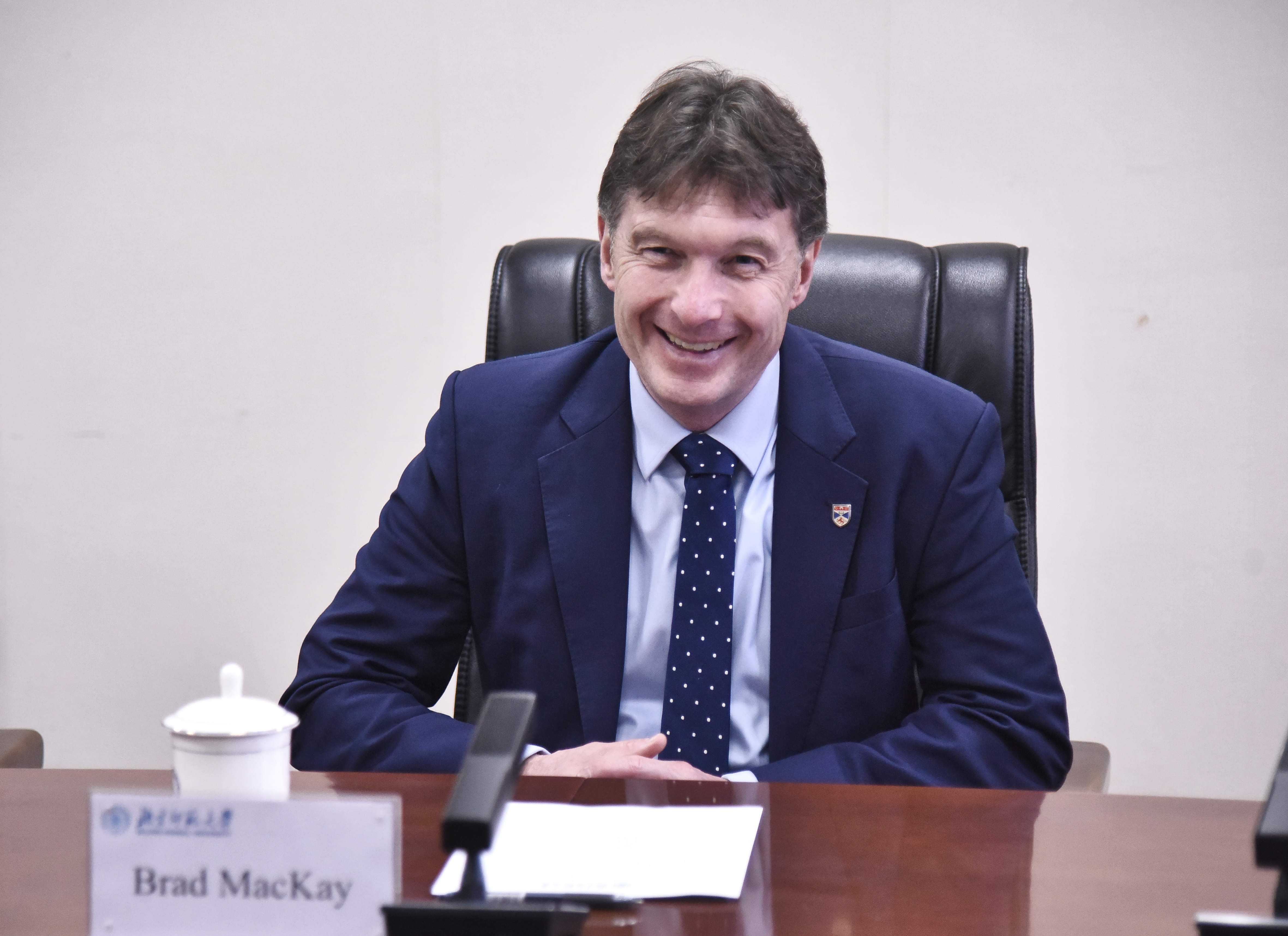 陈兴对麦凯一行到访表示热烈欢迎,并向来宾介绍了北京、珠海两校区的学科布局和建设近况,以及学校的国际战略规划。他指出,两校优势学科契合,希望在已有的学生交流项目基础上拓展多学科、多形式的合作,逐步扩大双方师生交流规模。