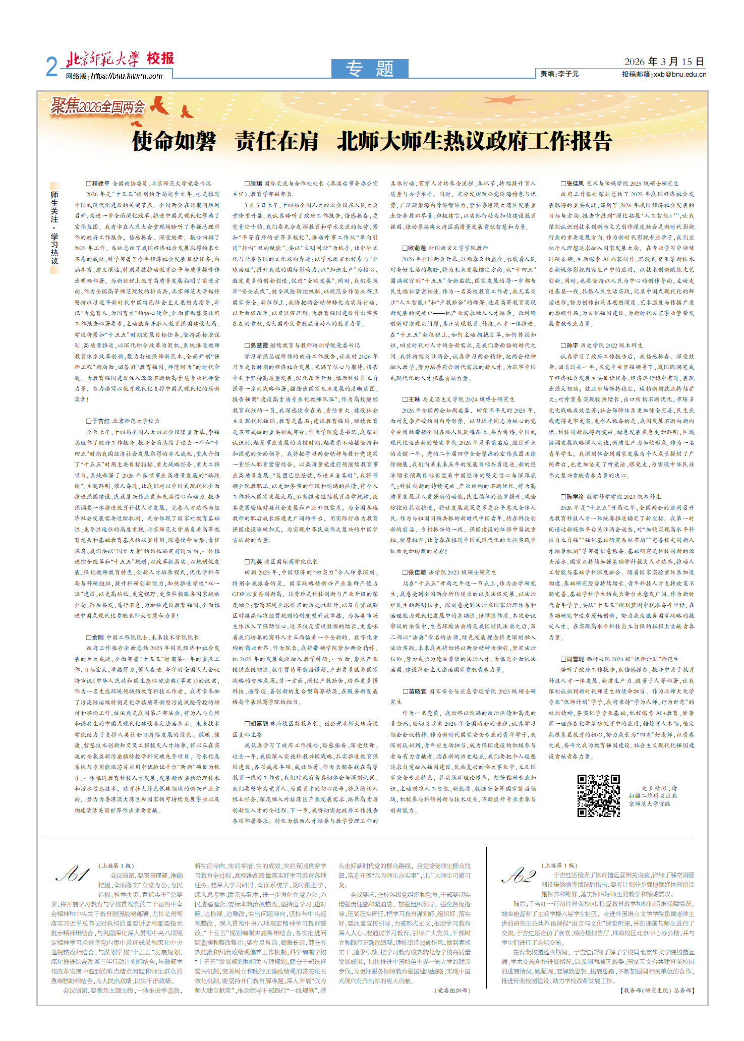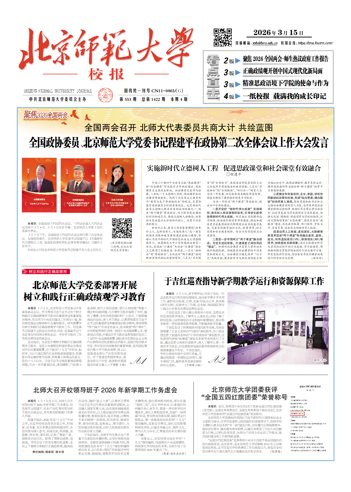 3月19日,北京师范大学召开2026年度工作部署会暨党委理论学习中心组(扩大)会议。