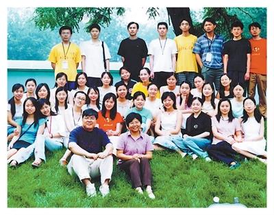 李山(前排左)早年间和师生合影