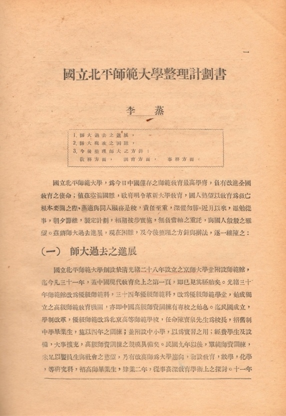 1932年校务整理委员会通过的《国立北平师范大学整理计划书》