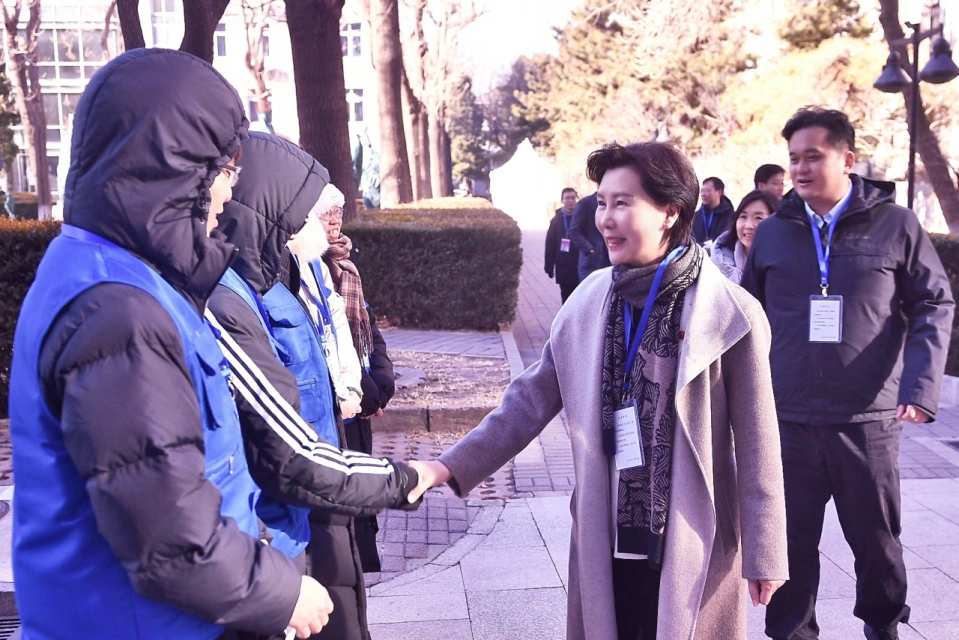 于吉红亲切慰问户外保障志愿者,感谢他们的辛勤付出,并叮嘱在优化热水供应、就餐保障与考生休息区等考生服务的同时,也应为志愿者配备保暖物资、设置临时休息区,以贴心举措做好全员保障。