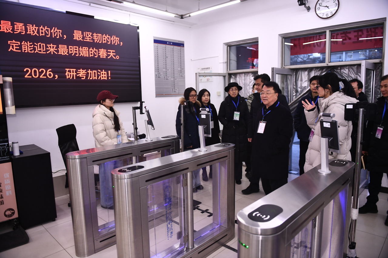12月19日至21日,北京师范大学党委书记程建平、校长于吉红深入考点一线,巡查2026年全国硕士研究生招生考试(初试)工作,重点检查考试安全、科技赋能、设备保障、考生服务及志愿者管理等关键环节,强调以“平安研考、公平研考、温馨研考”为目标,全面落实考试组织保障责任。