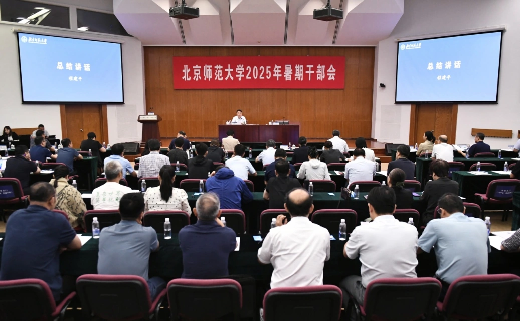 8月29日至31日,北京师范大学召开2025年暑期干部会,会议采用“两校区联动”模式,在北京校区、珠海校区同步设置会场。校党委书记程建平、校长于吉红等全体学校领导班子成员,各学部院系党政负责人、职能部门及附属单位负责人、珠海校区相关中层干部等150余人参加会议。