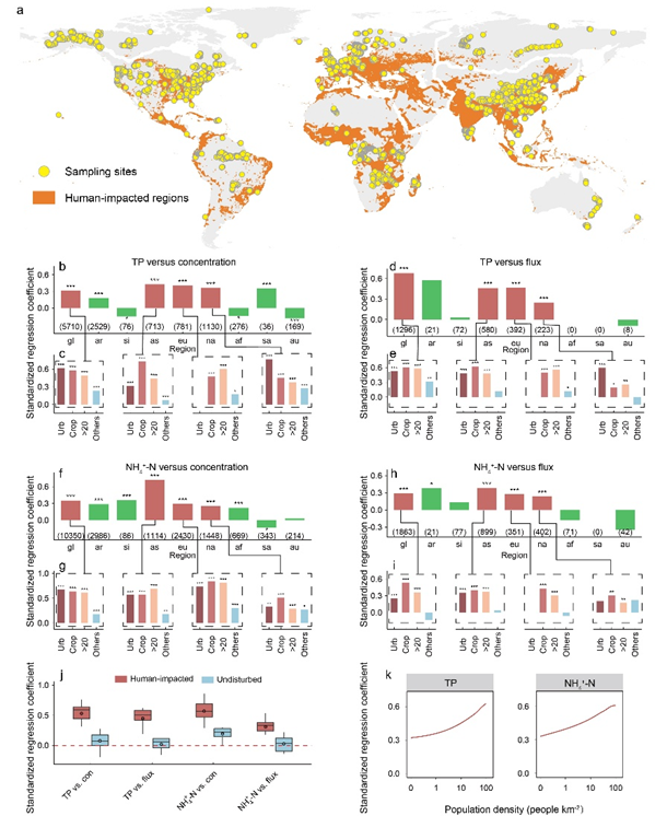 河流作为陆地与海洋之间的关键连接通道,在全球碳循环中扮演着重要角色,同时也是大气甲烷(CH4)的重要排放源。城市及农田扩张造成大量氮磷等营养物输入河流,显著改变了河流的水环境条件和生物地球化学过程。然而,人类活动所引起的水环境变化(尤其是营养盐富集)如何影响河流CH4排放、其背后的机制是什么,以及通过营养盐管控能在多大程度上实现CH4减排,目前仍缺乏系统的定量评估。