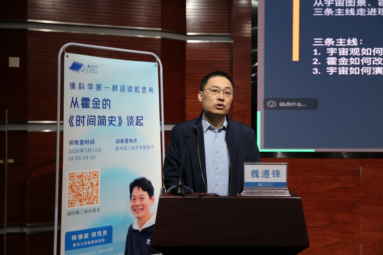 图书馆副馆长魏遵锋主持训练营并总结。他指出,此次讲座为大家打开了阅读《时间简史》和认识宇宙的窗户,希望同学们能够像科学家一样阅读和思考,成为思想的探索者。