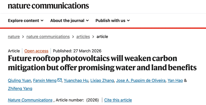 近日,北京师范大学环境学院副教授孟凡鑫团队在《自然·通讯》(Nature Communications)发表了题为“Future rooftop photovoltaics will weaken carbon mitigation but offer promising water and land benefits”的研究论文。屋顶光伏是全球低碳能源转型的核心路径,其长期价值远不止于提供清洁电力和减少碳排放。研究团队针对中国349座城市开展系统量化评估后发现:2050年我国城市屋顶光伏装机规模将实现大幅增长,尽管光伏碳减排效果会逐步减弱,但在节水、节地方面的协同效益将持续凸显。该研究指出,未来我国城市屋顶光伏部署应突破单一的减碳导向,加快构建能源、碳、水、土地多要素协同优化的屋顶光伏布局体系。