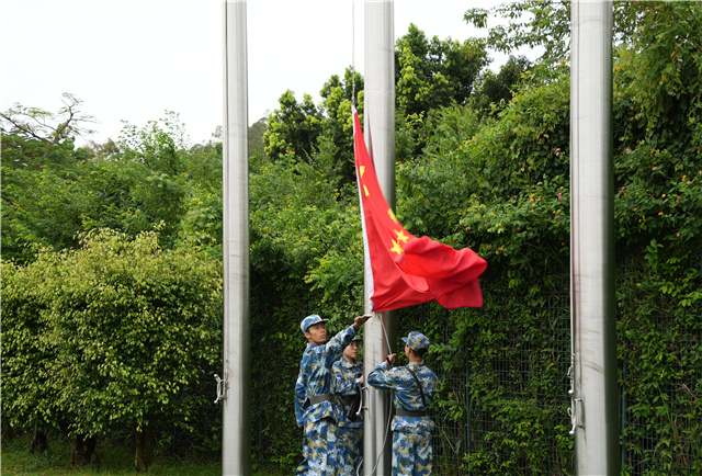 在激昂的国歌声中,国旗冉冉升起,结训仪式拉开序幕。