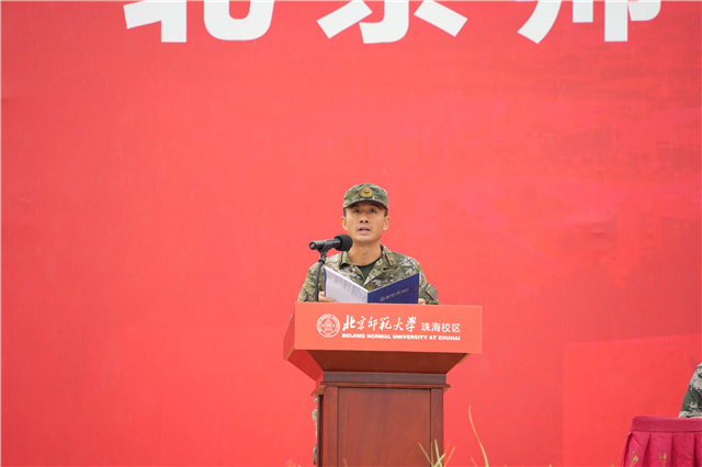 军训团参谋长、武警广东总队某支队副大队长钟佳宣读了《北京师范大学珠海校区关于表彰2025年学生军训先进集体和先进个人的决定》,对在军训中表现突出的集体和个人进行了表彰。