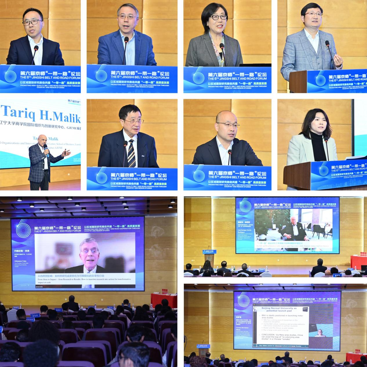 主旨演讲环节,世界银行前副行长、《Global Journal of Emerging Market Economies》(GJEME)编委约翰尼斯·林恩,拉美开发银行前行长、北京师范大学一带一路学院特聘教授恩里克·加西亚,德国埃尔福特大学教授、北京师范大学一带一路学院特聘教授何梦笔,中国社会科学院贫困问题研究中心秘书长檀学文,中山大学国际金融学院院长黄新飞,北京师范大学俄罗斯研究中心主任刘娟,山东大学国际问题研究院执行院长李远,辽宁大学商学院国际组织与创新研究中心、GJEME编委塔里克·马利克,北京师范大学湾区国际商学院院长孔英等围绕国际发展合作与全球减贫、海外投资与本土创新、数智时代与区域国别学、“一带一路”规则标准“软联通”、“一带一路”研究成果落地、“一带一路”与拉美发展、“一带一路”国际教育合作的创新路径等问题从理论与实践层面展开了深入研讨。主旨演讲分上下两个半场,分别由北京师范大学财经处处长、一带一路学院副院长蔡宏波,以及一带一路学院副院长、GJEME主编刘倩主持。