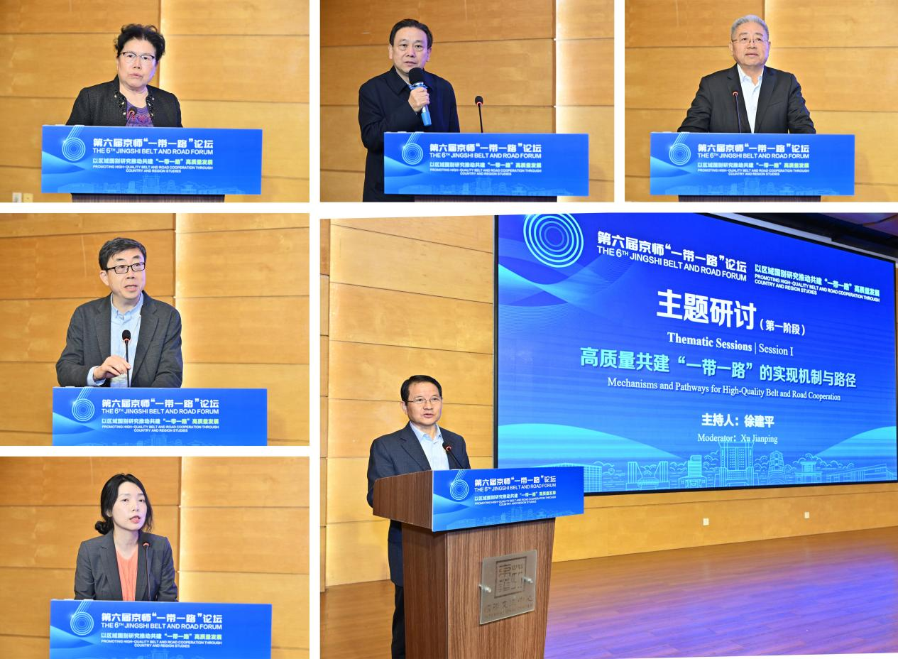本次论坛开展了三场重要研讨。第一阶段研讨围绕“高质量共建‘一带一路’的实现机制与路径”主题,由国家发展与改革委区域开放司(推进“一带一路”建设工作领导小组办公室)原司长徐建平主持。国务院学位委员会区域国别学学科评议组召集人、北京大学区域与国别研究院副院长翟崑,国务院研究室原司长、中国国际交流中心总经济师陈文玲,中国发展战略研究会副理事长孙世芳,中央政策研究室经济局原巡视员兼副局长白津夫以及北京师范大学一带一路学院研究员万喆进行了深入研讨,认为共建“一带一路”高质量发展新阶段要深入落实“八项行动”,推进建设“九大机制”,在实践中加强数字贸易等新兴领域国际合作的同时,要推动构建基于共建“一带一路”的区域国别学自主知识体系,助力高质量共建“一带一路”行稳致远。