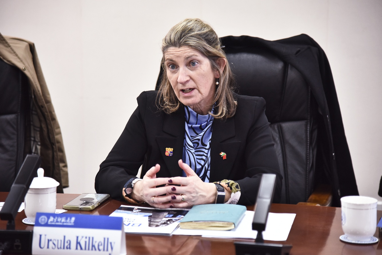 基尔凯利对北师大的热情接待表示感谢,并介绍了爱尔兰科克大学的教育优势与学科特色。她表示,科克大学作为一所知名综合性研究型大学,始终高度重视与中国高校的友好交流与合作,期待能与北师大携手,在人才培养、科研合作等核心领域开启实质性合作。