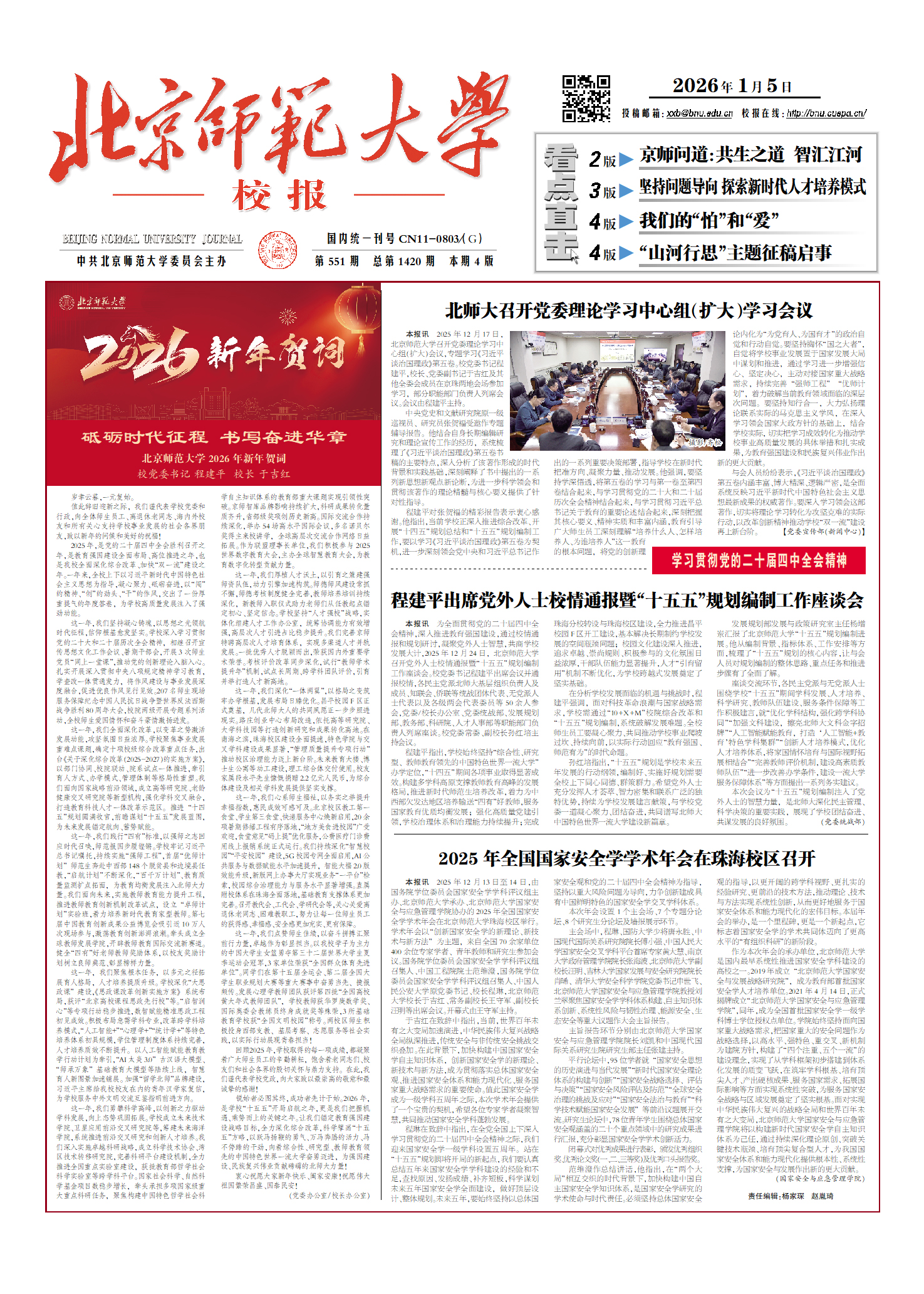 2026年1月6日上午,北师大召开学生工作指导委员会2025-2026学年第一次会议。