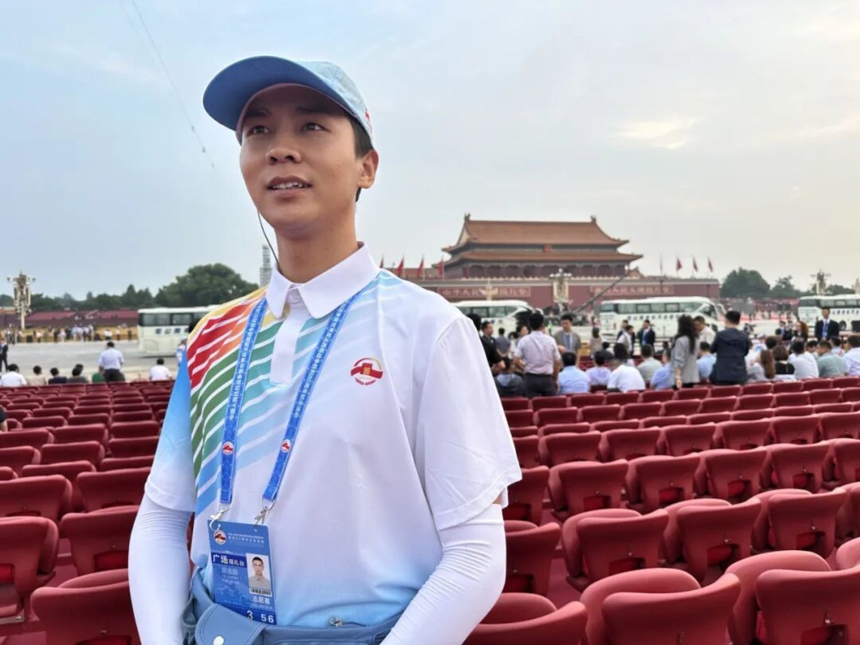 北京工商大学研二学生廖承禹是学校团委的学生副书记,曾参加过多项首都重大活动。目前,他已经累计志愿服务时长1094小时,是一名“志愿达人”。在这次活动中,他在广场东侧路线担任流动引导岗。“我和其他志愿者化身最美的风景线,排布在观礼人员必经的路线途中,用温暖的微笑引导、护送观礼人员有序经过。”廖承禹说,“人们的笑容,是对我最好的表扬。”