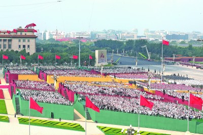 各界代表在纪念大会现场观礼。新华社记者 杨磊摄