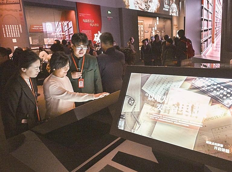 观众在中国考古博物馆体验交互式展览内容。新华社发