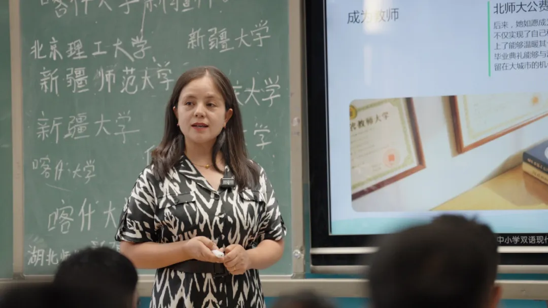 让我们跟随寻访调研团队师生的脚步,一起走近“四有”好老师校友奖励计划银质奖章获得者、新疆维吾尔自治区阿克陶县红柳中学教师阿希古丽·阿卜杜热西提,了解她的故事。