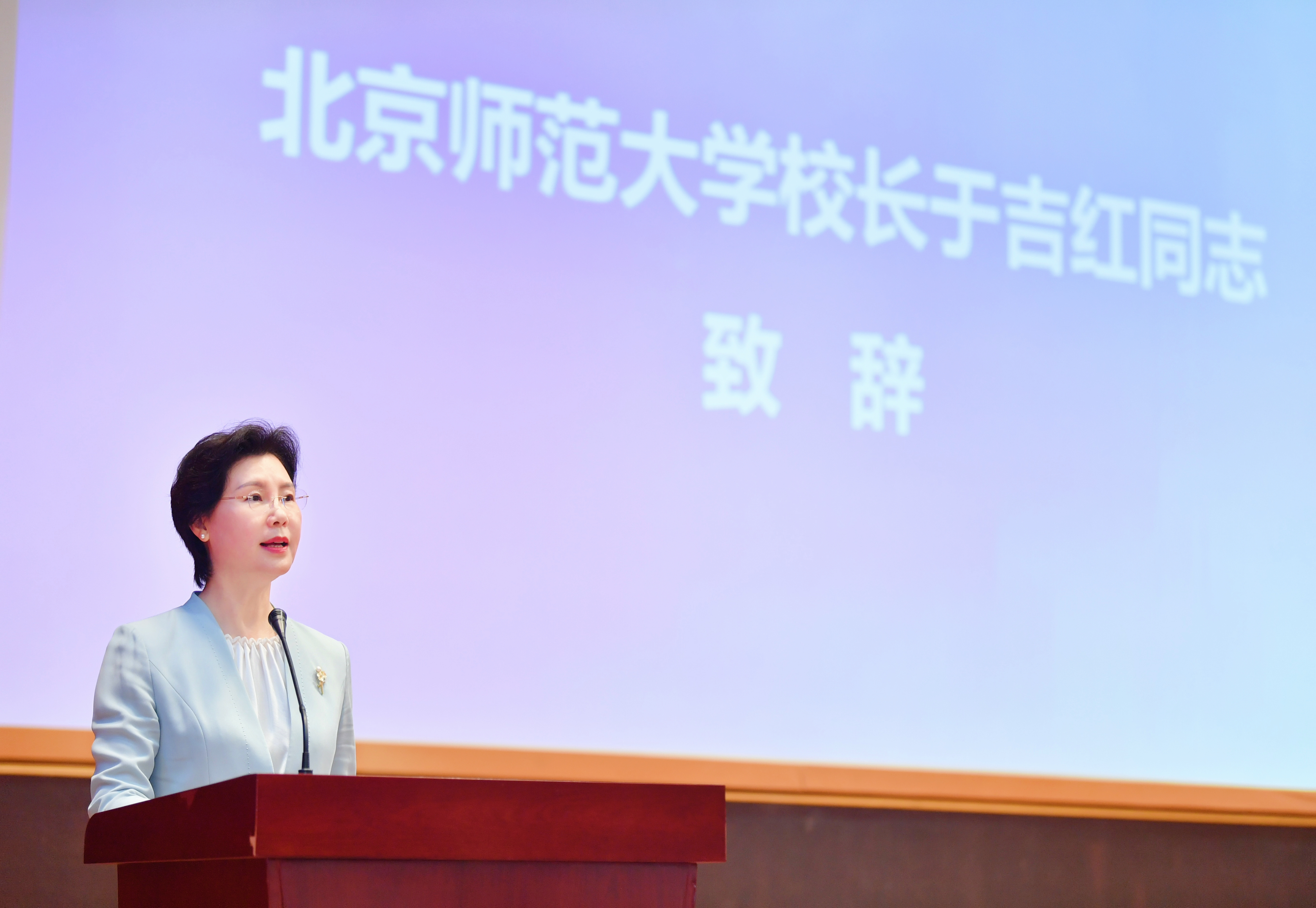 于吉红向莅临大会的各位领导、嘉宾表示欢迎,向关心支持学校发展的各方致以感谢。她强调,教育、科技、人才是中国式现代化的基础性、战略性支撑,北京师范大学依托优势学科,以生命健康、基础教育两大领域为切入点,推动“四链”深度融合,打造校城融合样板工程。她指出,要加强校际联动,与首都医科大学共建老龄健康交叉研究院,打造部属院校和市属院校协同合作的示范标杆;要深化区校协同,依托未来生命健康产业园,整合资源强化源头创新,联合企业深化产学研用合作,助力首都健康事业和生物医药产业发展;要创新智能教育,探索人工智能赋能基础教育新范式,持续优化智能工具在首都基础教育领域的应用,绘就高质量教育新图景。