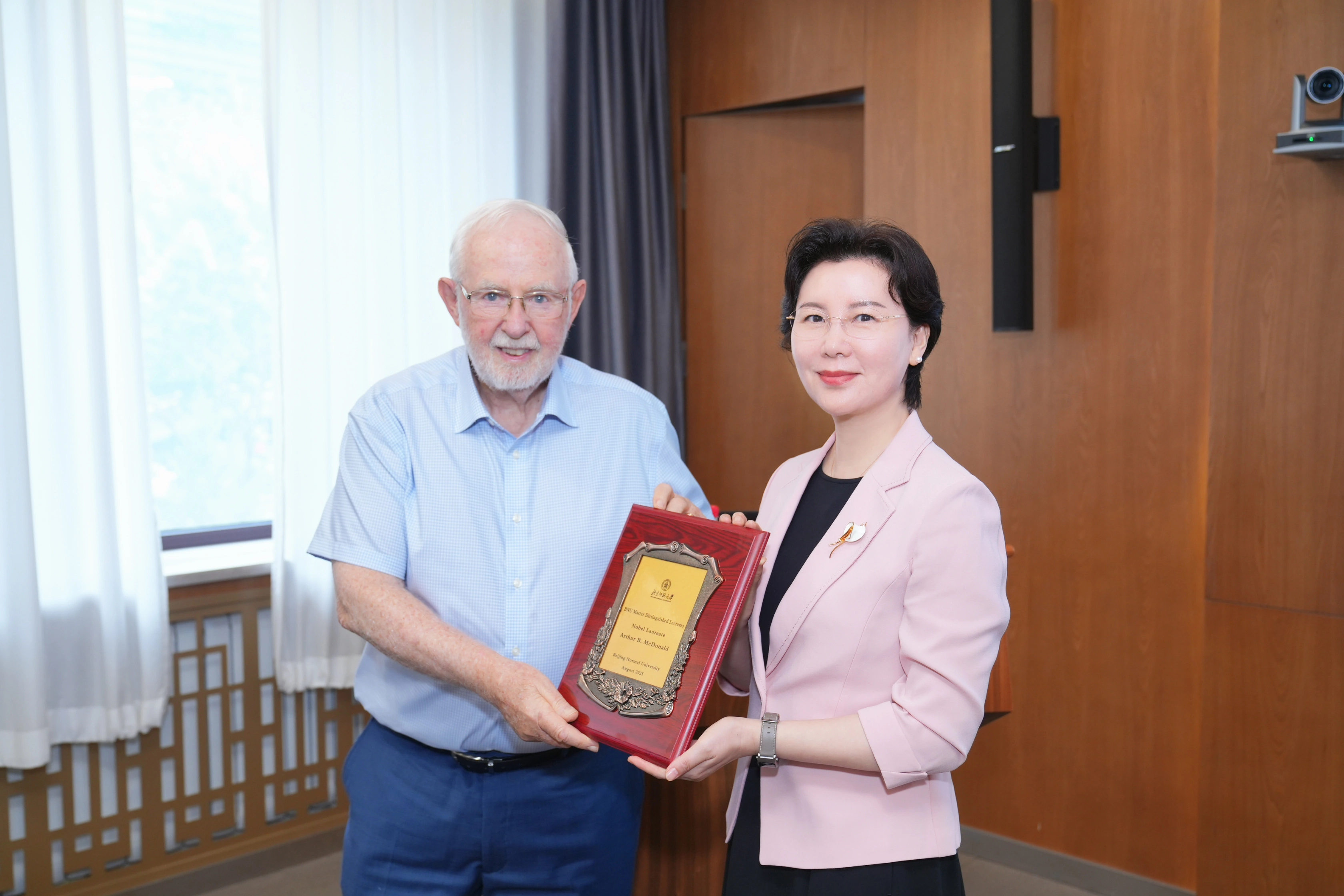 于吉红代表学校向McDonald教授颁授“京师大讲堂”纪念牌,对他所作的精彩报告致以诚挚谢意,感谢他激发了师生的科研灵感,拓宽了他们的学术视野,点燃了其科学探索的热情。