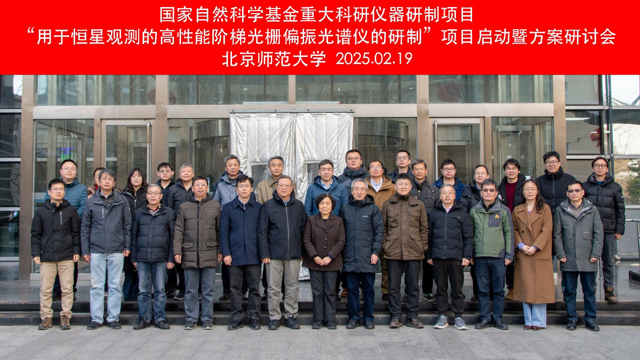 2月19日,由北京师范大学、中国科学院国家天文台和中国科学院南京天文光学技术研究所合作承担的国家自然科学基金重大科研仪器研制项目“用于恒星观测的高性能阶梯光栅偏振光谱仪的研制”在京师科技大厦举行了项目启动暨方案研讨会。
