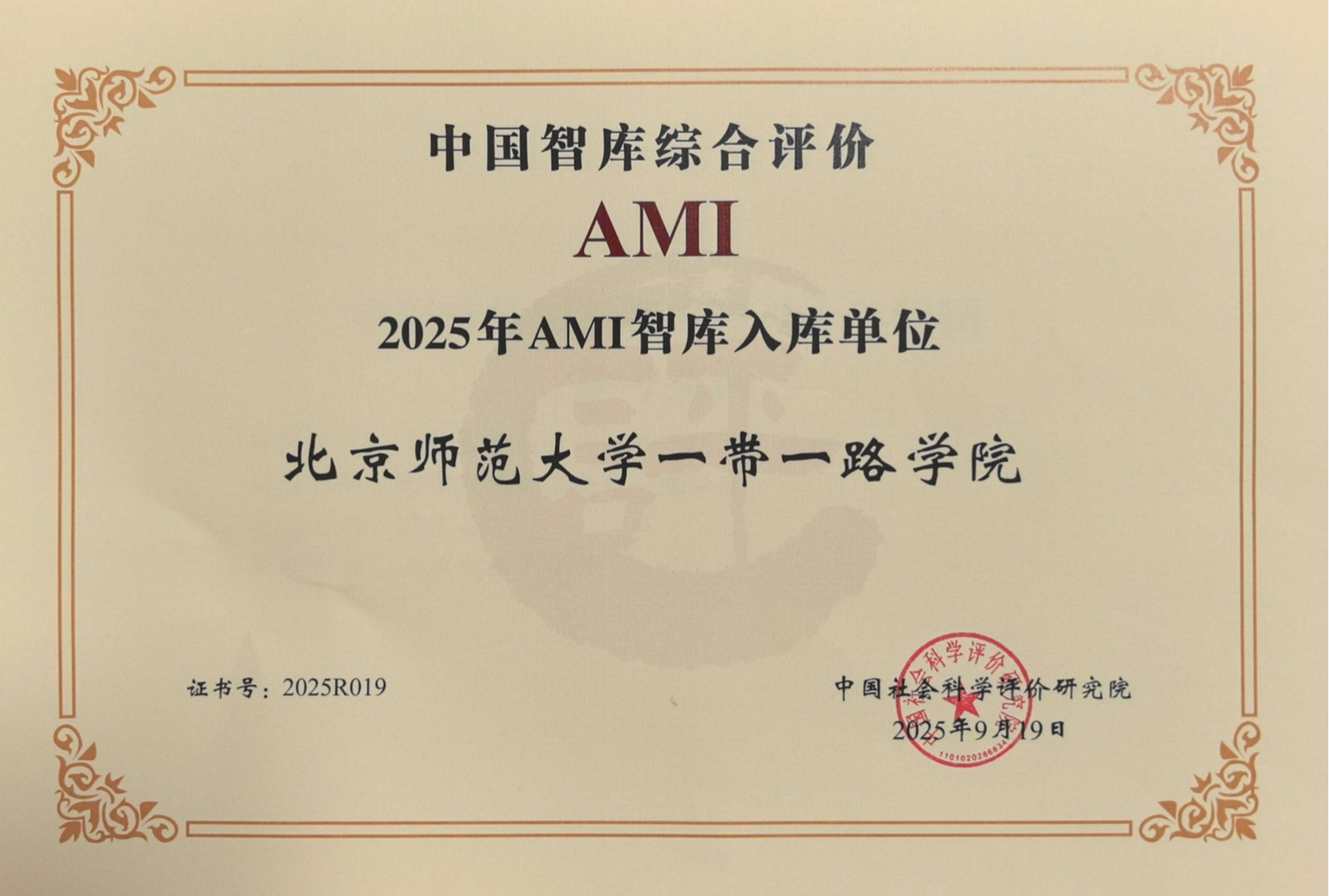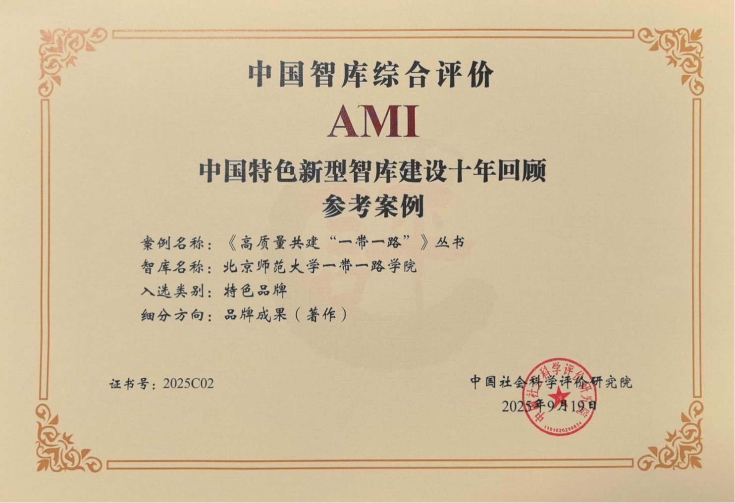 会上公布了中国智库综合评价研究项目(2025)评审结果,北京师范大学一带一路学院入选中国智库综合评价“2025年AMI智库入库单位”,参评成果《高质量共建“一带一路”》丛书获选为“中国特色新型智库建设十年回顾参考案例”。