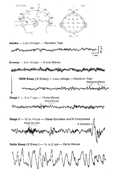 脑电波是一类由大脑中局部群体神经元同步放电所形成的具时空特征的脑电活动电波。德国医生汉斯•伯格(Hans Berger)在1924年首次在人的头骨上记录到脑电波图(electroencephalography, EEG)。在最早测量的脑电波中,人们已观测到存在不同频率段的振荡脑活动,并发现这些不同形式的振荡电活动与大脑的不同功能状态密切相关。根据生理特征和频段范围,脑电振荡活动主要可分为delta(< 3Hz),theta(3-8 Hz),alpha(8-12 Hz),beta(β, 12-30 Hz)和gamma(γ, 30-100 Hz)频段振荡活动。例如在深度睡眠阶段,主要可观测到delta和theta振荡脑电波,在快速眼动睡眠和清醒阶段,则以alpha,beta和gamma脑电波为主(图1);此外当人执行注意或短时记忆等脑认知功能时,脑电振荡活动也发生不同时空特征的变化。因此,脑科学家们普遍认为,神经网络生成中不同形式的振荡电活动是大脑信息处理和传递的“编程语言”,可以从中解析出大脑所思的内容和控制指令,从而实现科幻电影中那些意念控制物体或机器的酷炫技术。然而在现实生活中,我们现仍远未达到能高效地开发和建立这些黑技术的阶段;其中一个最为主要的原因是因为我们仍未清楚地了解脑电波活动如何生成、又如何编码和传递外界信息或表征思想内容等这些基本问题。至今神经科学研究者们从未停止探索其中的奥秘。