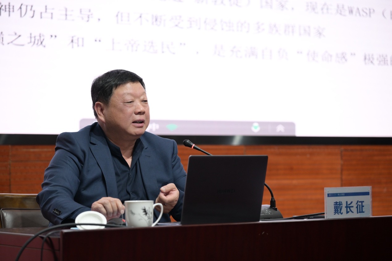 讲座中,戴长征从美国的国家性质及其演变到中美关系历史分析,再到中美竞合中的中国国家安全三个方面层层递进,就目前世界的体系、格局,中美两国关系的发展等进行深度讲解,提出中国国家安全的应对策略。