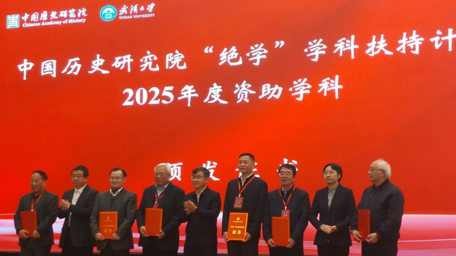 近日,全国主要史学研究与教学机构联席会议2025年会暨“绝学”学科建设研讨会在武汉召开。会上为中国历史研究院“绝学”学科扶持计划2024、2025年度资助学科负责人颁发证书。北京师范大学史学理论与史学史研究中心教授晁福林被批准为2024年度资助学科“彝铭学”的学科负责人、杨共乐被批准为2025年度资助学科“古典学”的学科负责人。