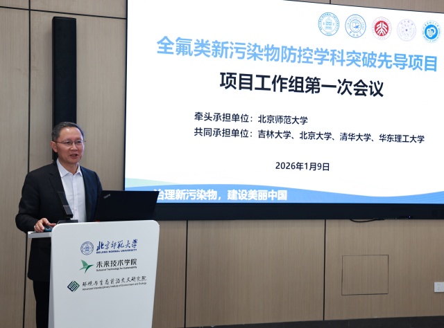 1月9日,由教育部、财政部联合部署的基础学科和交叉学科突破计划“全氟类新污染物防控学科突破先导项目”工作组第一次会议在北京师范大学珠海校区召开。项目首席科学家、北京师范大学未来技术学院院长余刚主持会议,项目牵头承担单位负责人北京师范大学副校长陈兴致辞。