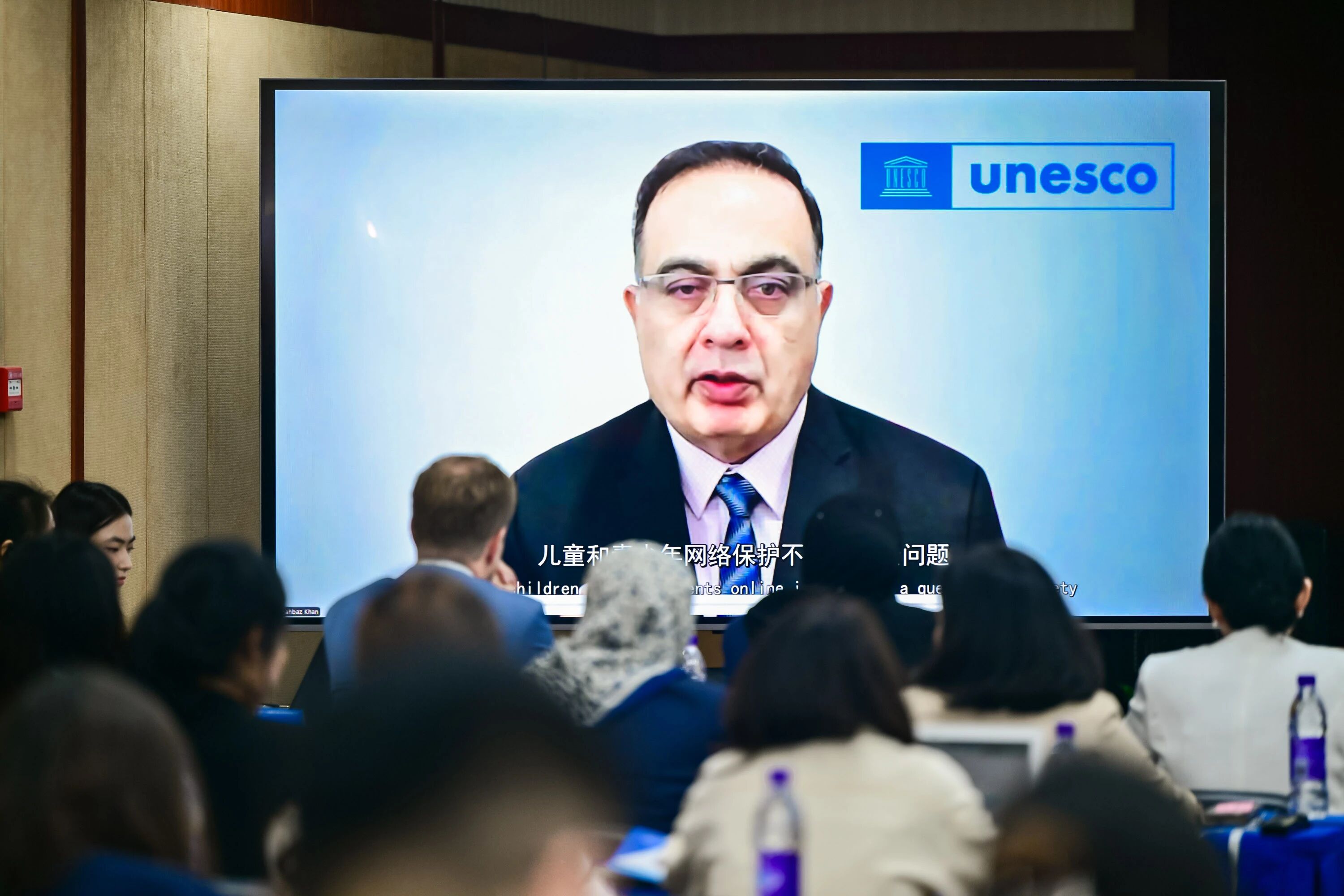 联合国教科文组织东亚多部门地区办事处主任夏泽翰通过视频方式致辞,他引用中国古代思想家荀子“根不固,则树无以长;学不深,则知无以广”的名言,深刻阐述了数字时代基础建设的重要性。“儿童和青少年的网络保护不仅是安全问题,更关乎赋权、包容与人权。今天我们奠定的数字基础,将直接塑造未来社会的活力与竞争力。”