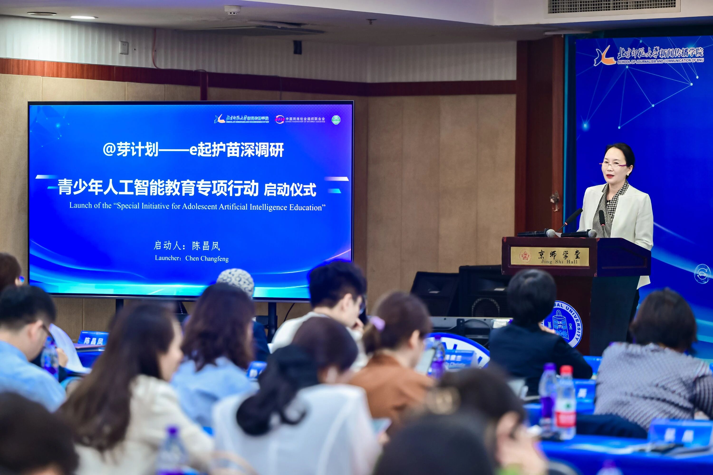 随后,中国教育学会青少年媒介素养分会理事长、清华大学新闻与传播学院教授陈昌凤宣布“@芽计划-e起护苗深调研-青少年人工智能教育专项行动”正式启动。该行动联合国内主流科技企业,将前沿AI技术转化为儿童、教师、家长可触、可用、可生长的教育资源,推动城乡、家校社协同构建面向未来的教育共同体。“二十年前,我们就开始呼吁在基础教育中融入媒介素养教育;今天,人工智能素养教育终于迎来了规模化推进的契机。”陈昌凤表示,期待社会各界共同支持专项行动,为青少年数字素养提升贡献力量。