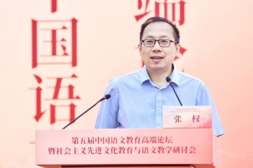 张权在致辞中强调,将社会主义先进文化融入语文教学是新时代的战略任务。他指出,语文课程作为国家通用语言文字学习的基础课程,肩负着以文化人、培根铸魂的重要使命。面对世界百年变局和多元文化激荡,必须通过语文教学引导学生增强文化自信,自觉抵制错误思潮。张权提出三点要求:一要深刻认识社会主义先进文化教育的时代意义;二要创新教学方式,善用数字技术打造生动课堂;三要构建长效机制,深化教研支撑、优化评价体系、强化协同育人。他期待与会专家深入研讨,为培养担当民族复兴大任的时代新人贡献智慧。