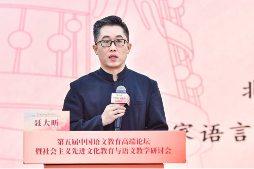 北京师范大学文学院党委副书记、国家语言文字推广基地(北京师范大学)副主任聂大昕致闭幕辞。聂老师回顾了论坛中嘉宾老师们的精彩瞬间,对论坛主办方、嘉宾以及关心语文课堂教学变革的教育界同仁表示衷心感谢。聂老师特别指出,中国语文教育高端论坛自创办五年来,始终坚持以习近平新时代中国特色社会主义思想为指导,累计吸引线上线下参与者超40万人次,已成为我国语文教育领域最具影响力的学术盛会之一。五年来,论坛始终紧扣时代脉搏,为全国语文教师搭建了高水平交流平台。作为语文教育研究的重要阵地,北师大文学院将继续发挥学科优势,搭建交流平台,与全国语文教育工作者携手共进,为培养担当民族复兴大任的时代新人贡献力量。