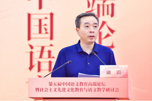 康震在致辞中指出,本届论坛聚焦社会主义先进文化教育这一时代课题,对落实党的二十大精神和习近平总书记重要指示具有重要意义。他介绍了北京师范大学在中国语言文学学科建设和教师教育方面的优势,特别是文学院在课标修订、教材建设等方面的突出贡献。另外,他强调中国语文教育高端论坛作为重要交流平台,能够汇聚专家学者共同探讨语文教育重点问题,为培育时代新人提供有力支持。