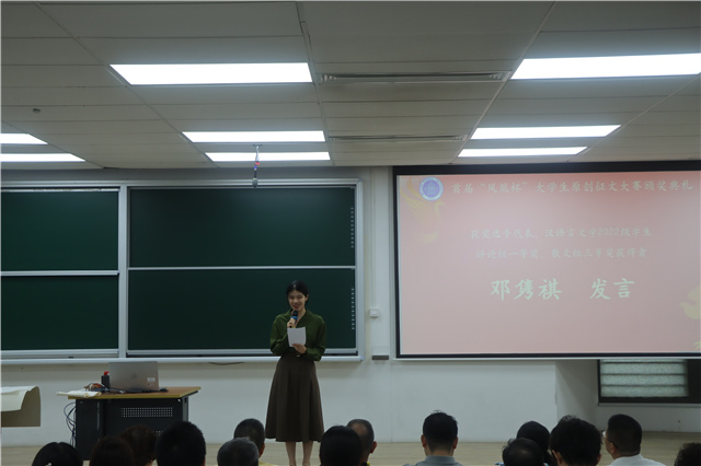 典礼现场还安排了获奖选手宣读作品环节。诗歌组三等奖获得者高瑞敏、二等奖获得者曾繁鑫,小说组一等奖获得者张湘韵,评论组一等奖获得者黄山分别朗诵了各自的获奖作品(片段),发表创作感言并现场向评委代表求教。