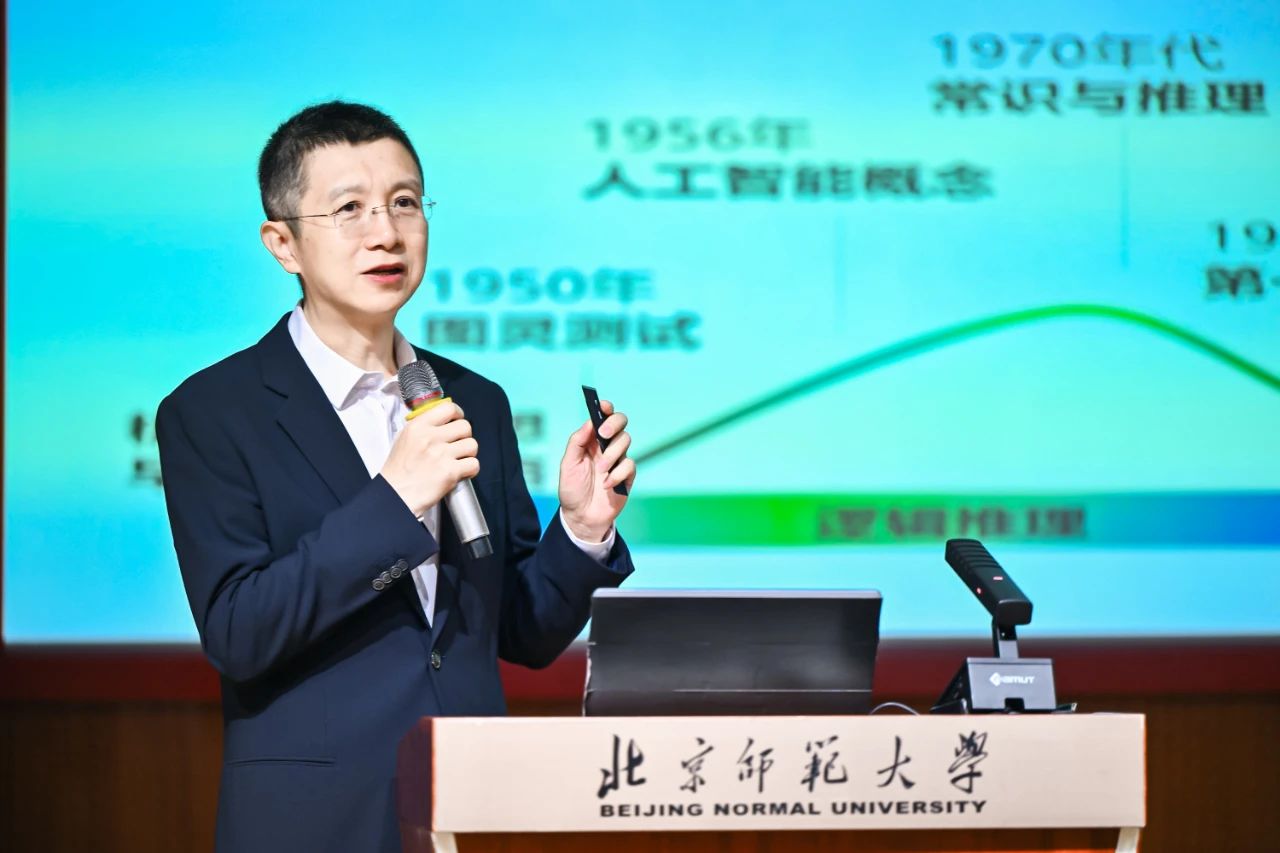 王海峰围绕大模型的发展趋势进行了系统讲解。他指出,人工智能已进入以“理解、生成、逻辑与记忆”为核心能力的大模型时代,百度“文心一言”等应用正在教育、科研、文化等多个领域发挥关键作用。他倡导全社会加强AI原生人才培养,推动AI教育全阶段、系统化发展。