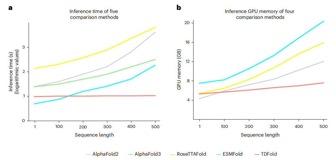 图4:TDFold在预测长序列蛋白质(=500氨基酸)的推理效率远优于对比方法