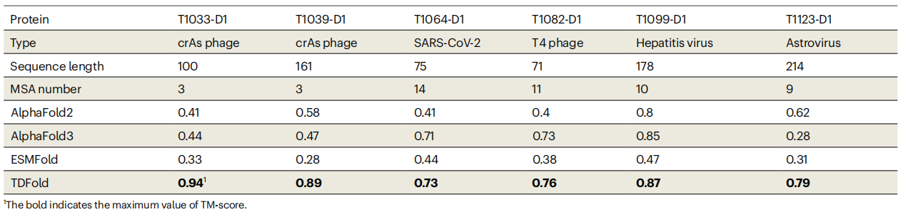 表1:TDFold在快速进化的病毒蛋白的三维结构预测均优于对比方法