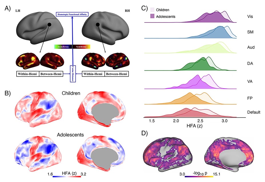 近日,发展认知神经科学领域国际期刊Developmental Cognitive Neuroscience刊出北师大心理学部陈丽珍博士和左西年教授的研究论文“Intellectual ability and cortical homotopy development in children and adolescents”,系统展示学龄阶段儿童至青少年(6-18岁)大脑皮层两个半球功能同伦的发育规律及其与智力发展的动态关联。研究基于其前期所提出“同伦功能亲和度”这一原创功能同伦图谱方法,利用“彩巢计划-成长在中国”加速纵向队列研究数据,沿袭皮层形态发育及其智力关联的组分发育交叉设计,为理解认知能力发展个体差异提供了神经机制新视角。