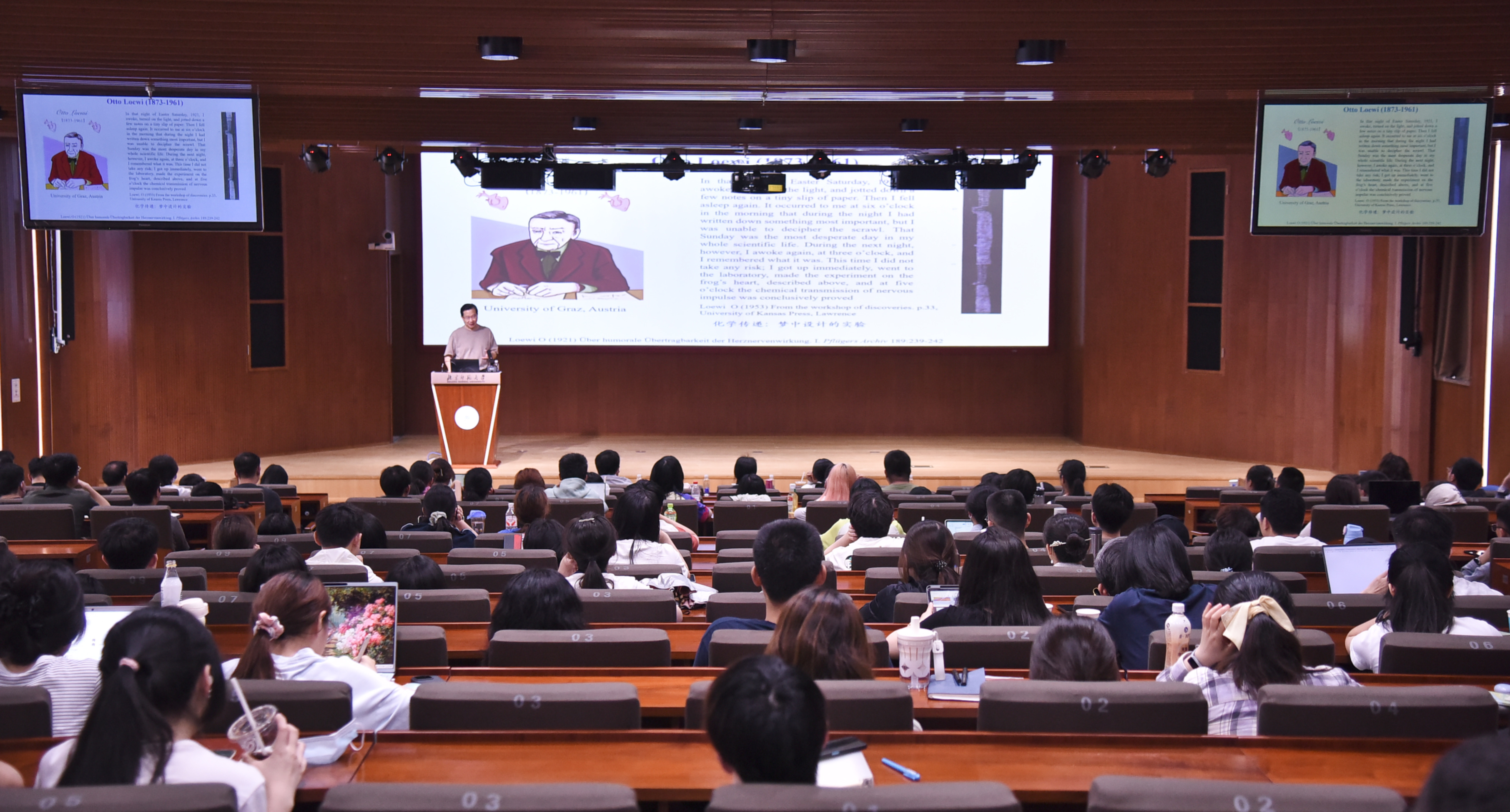 在交互动交流环节,师生踊跃提问,围绕探索新神经递质的实验细节与未来发展趋势等问题展开热烈讨论。饶毅逐一细致回应、悉心解答,现场气氛活跃,学术氛围浓厚。