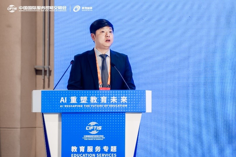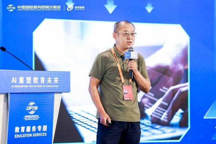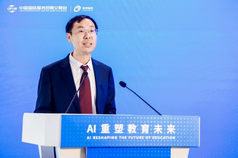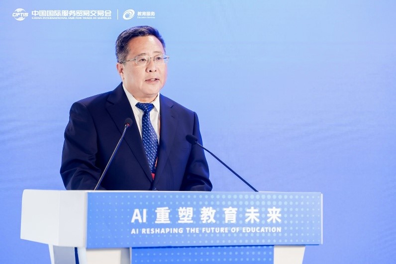 9月11日下午,2025年中国国际服务贸易交易会教育服务专题——“人工智能赋能教育论坛”在首钢园举行。本次论坛以“AI重塑教育未来”为主题,由北京师范大学与北京市数字教育中心联合主办,汇聚了来自政府、高校、科研院所及科技企业的300余位专家学者和行业代表,共同探讨人工智能技术驱动下教育变革的前沿趋势与实践路径。北京市教育委员会副主任张耀天、北京师范大学常务副校长王守军出席论坛并发表致辞。