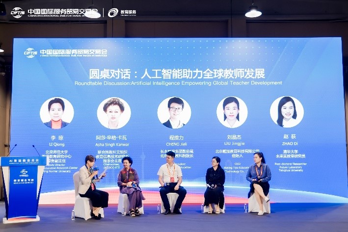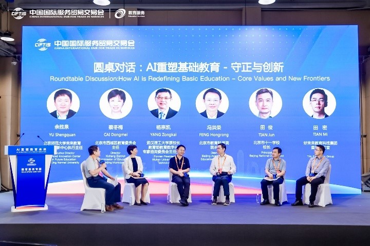 三场圆桌对话精彩纷呈。北师大教授余胜泉主持“AI重塑基础教育”圆桌,围绕基础教育教学中的守正与创新展开深入探讨;北师大教授周海涛主持“AI+高等教育”议题,聚焦智能评价、院校治理与伦理挑战;北师大教授李琼主持“人工智能助力全球教师发展”圆桌,倡导跨国协作与资源共享。
