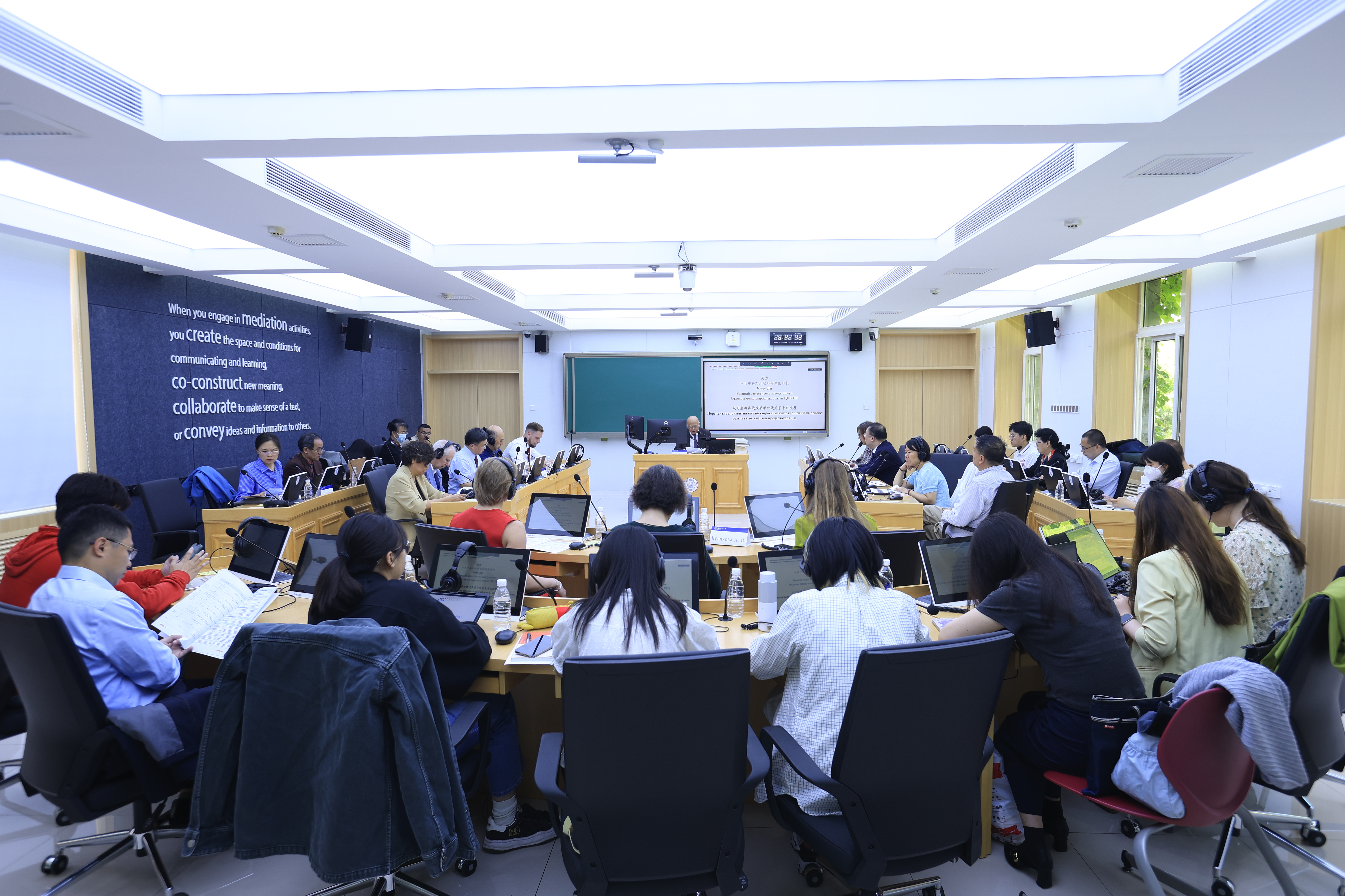 5月24日,由教育部国别和区域研究基地北京师范大学俄罗斯研究中心与莫斯科国立国际关系学院联合举办的“区域国别学与俄罗斯研究再定位”俄罗斯学国际研讨会在北京师范大学召开。今年适逢两国互办文化年,又值世界反法西斯战争胜利80周年重要历史节点,来自中国、俄罗斯、德国等国的多学科专家学者齐聚一堂,共同探讨“区域国别学”学科建设背景下的俄罗斯研究新方向。中外学者专家近50人参会。开幕式由北京师范大学外国语言文学学院党委书记艾忻主持。