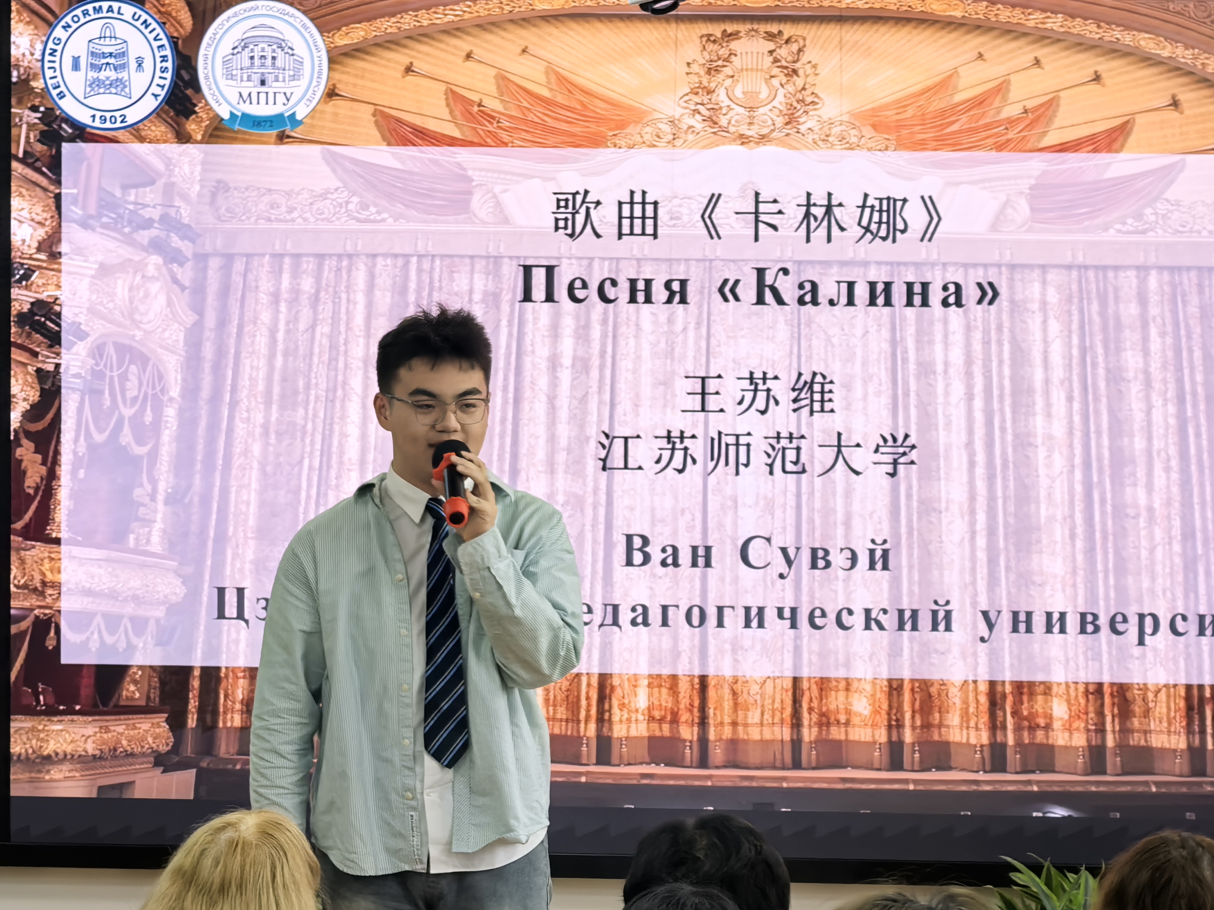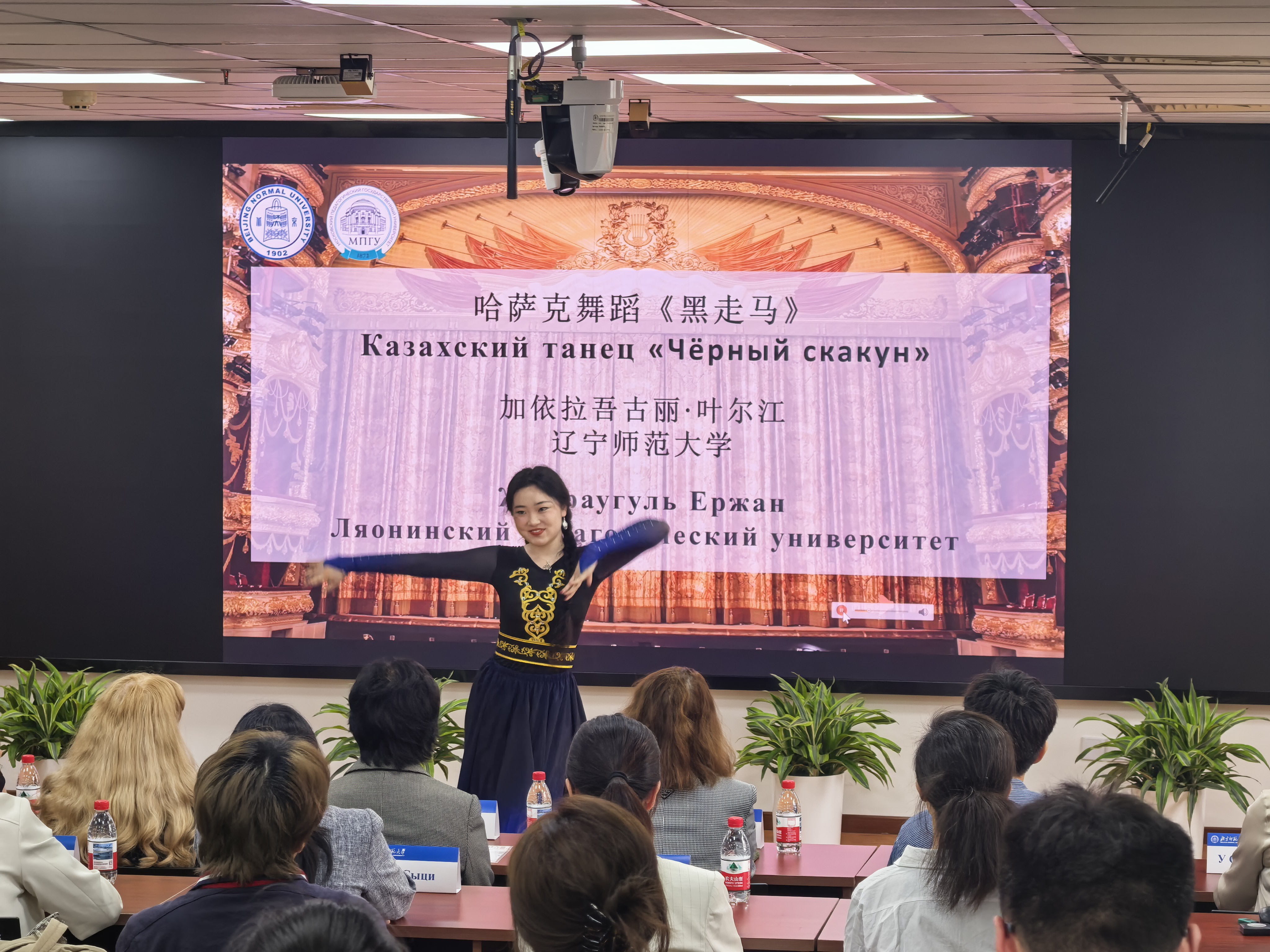 4月19日,第十一届“奔向莫斯科”俄语奥林匹克竞赛闭幕式在北京师范大学后主楼914举行。闭幕式以融合中俄文化元素的才艺展示开场,来自各校的参赛选手为大家带来了哈萨克舞蹈、中国古典舞、俄语配音表演、俄罗斯歌曲演唱以及现代舞等节目,融合中俄文化元素,展现了当代俄语学子多才多艺、积极向上的青春风貌。
