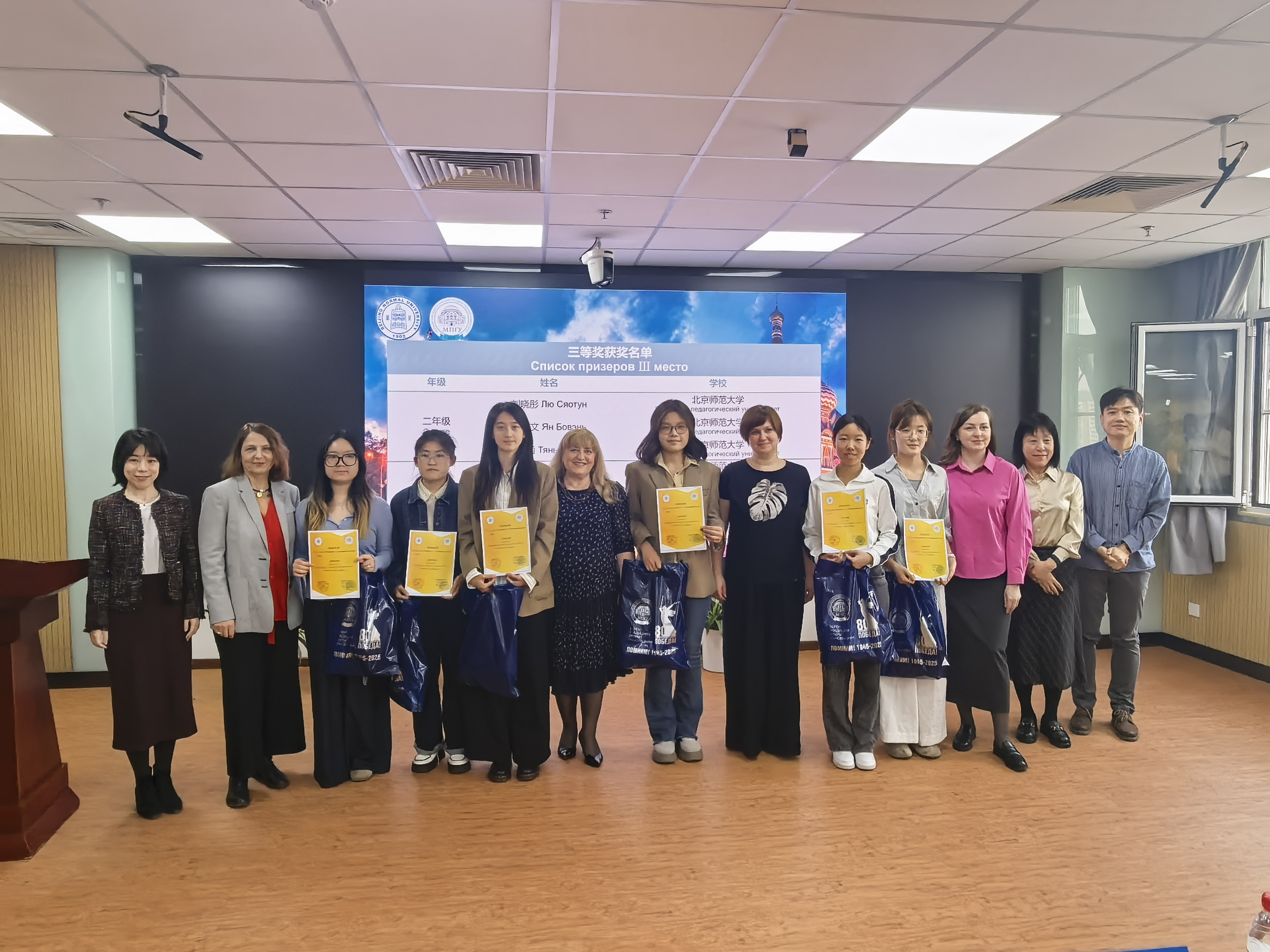 经过两轮激烈角逐,最终共有16名选手脱颖而出。其中,北京师范大学和四川师范大学毕业生组的优胜者获得了赴莫斯科国立师范大学公费攻读硕士研究生的宝贵机会。在全场热烈的掌声中,第十一届“奔向莫斯科”俄语奥林匹克竞赛落下帷幕。