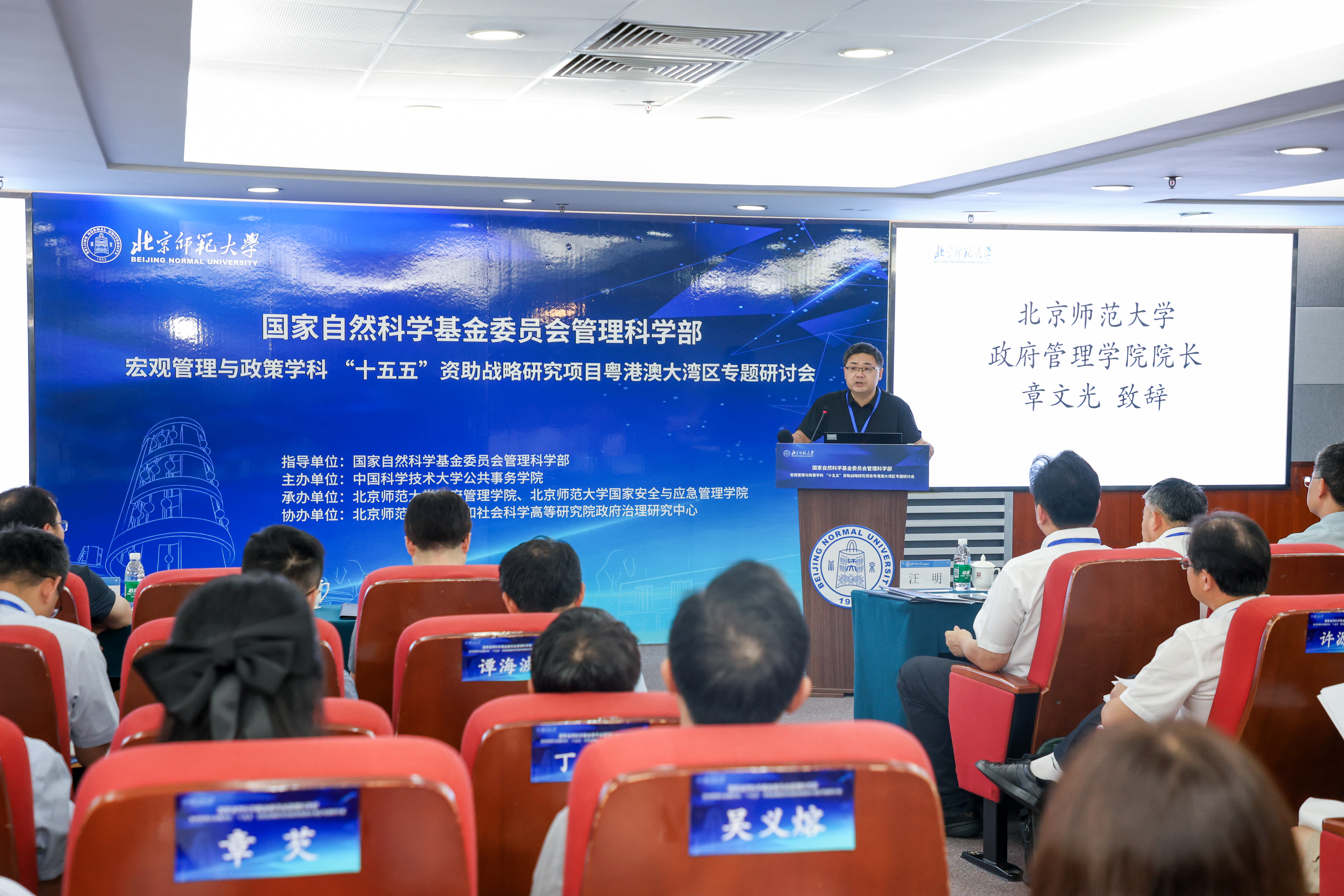 8月30日,由国家自然科学基金委员会管理科学部指导,中国科学技术大学公共事务学院主办,北京师范大学政府管理学院与国家安全与应急管理学院联合承办,北京师范大学人文和社会科学高等研究院政府治理研究中心协办的宏观管理与政策学科“十五五”资助战略研究项目粤港澳大湾区专题研讨会在北京师范大学珠海校区召开。本次研讨会聚焦宏观管理与政策学科的发展态势与未来方向、粤港澳大湾区治理等议题,来自宏观管理与政策学科各领域资深专家、国家自然科学基金委管理科学部与学科战略项目组成员,以及清华大学、北京大学、武汉大学、中山大学、华南理工大学、香港科技大学(广州)、香港城市大学、澳门大学、澳门城市大学等近30所高校和科研院所的80余名专家学者共同参与研讨会。开幕式由北京师范大学政府管理学院党委书记于海波主持。