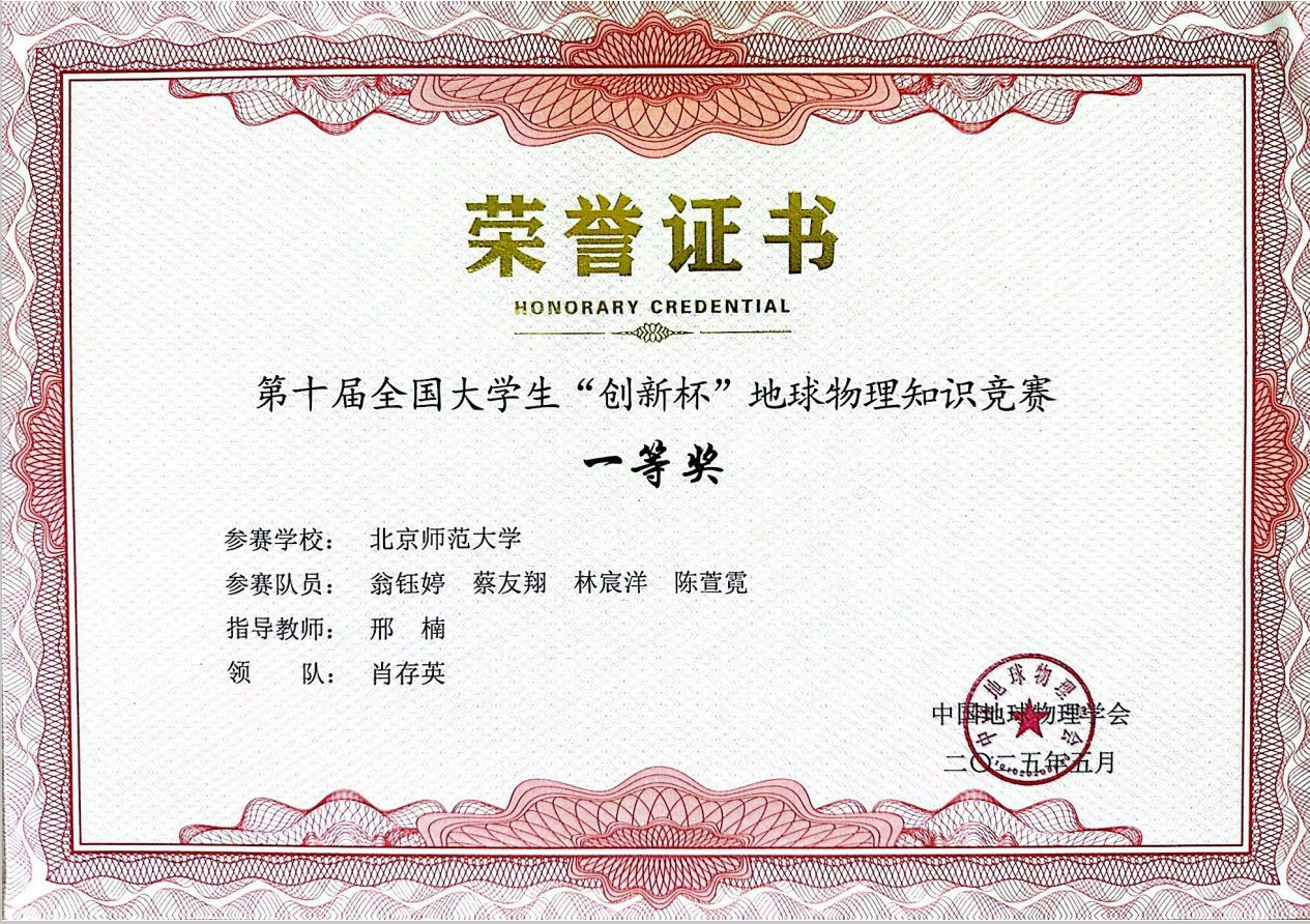 5月21日至25日,第十届全国大学生“创新杯”地球物理知识竞赛在吉林大学举行。北京师范大学物理与天文学院首次组队参赛,在强手如林的竞争中脱颖而出,斩获空间物理类一等奖,展现了北师大在空间物理与行星科学领域的扎实功底与创新潜力。
