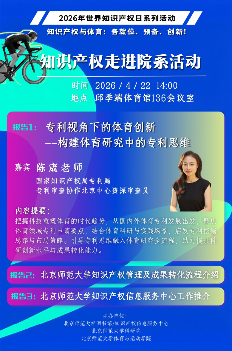 主办单位:北京师范大学图书馆/知识产权信息服务中心、北京师范大学科研院、北京师范大学体育与运动学院