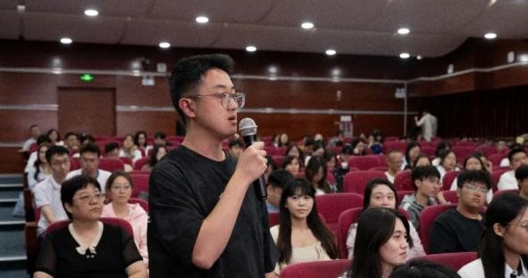 在互动环节,现场师生积极提问,围绕“明远四句”、反教育行为等话题展开深入交流。顾明远表示,教育必须反对以过度竞争为导向的做法,应倡导合作、互助和全面发展;同时鼓励青年学子要树立家国情怀,勇于担当教育使命。